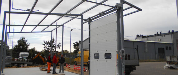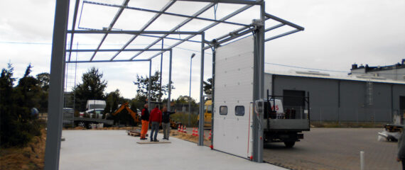 As people say – “the customer is the king”, so there is no use to be bothered with assembly guidelines prepared by the manufacturer since the pace of the execution of the investment project forces us to assemble the gate or even install the automatics when the hall does not even exist yet. It looks amazing, the skeleton of the structure and only the industrial VERDOOR gate with the control unit and drive installed. Colloquially speaking, it was an assembly made crazily, but time – or rather lack of it – was crucial for the investor. Nobody felt like taking up such a task. By dint of co-operation of the whole team of the VERDOOR people, the time from ordering for manufacturing until the end of the assembly was 8 days! You must admit that such an execution in the top September season was a real challenge for the manufacturing department and internal service teams. As a souvenir, we are taking a few photos from Anin located in the vicinity of Warsaw, where the warehouse of dental materials will be operating soon. All in all, it is understandable that when people suffer from toothache, you must be in hurry!