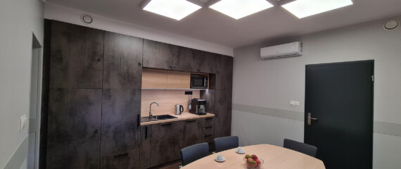 Oh, it was tough for us to leave the production office for several months. We finally decided to do it. On a cold March morning, we took out our desks and computers to social containers and off we go! Twenty-five years without any renovation, so it was high time for revolutionary changes. There will be no compromises. We will be working in beautiful rooms. We are getting rid of anything we can – windows, floors, electric, hydraulic and water systems as well as heating. We left nothing behind. We will rearrange everything. There will be air conditioning, modern toilettes, electric systems, heating, new doors, windows, floors, kitchens, plasters, that is everything! We would like to thank our favorite architect, Ms. Ewa Abramczyk, for her creative ideas, designs, and numerous consultations. Take a look at the results. Come and visit us to drink some great coffee!
